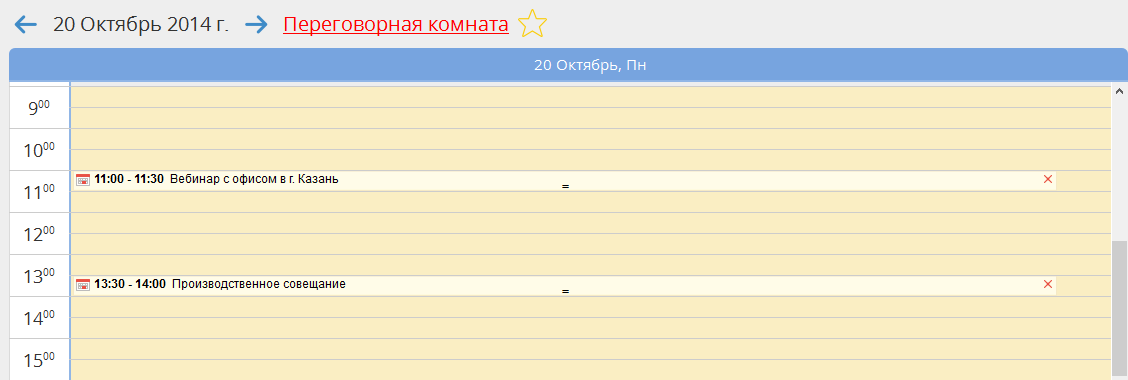 Рис. 2. Страница общего календаря "Переговорная комната"