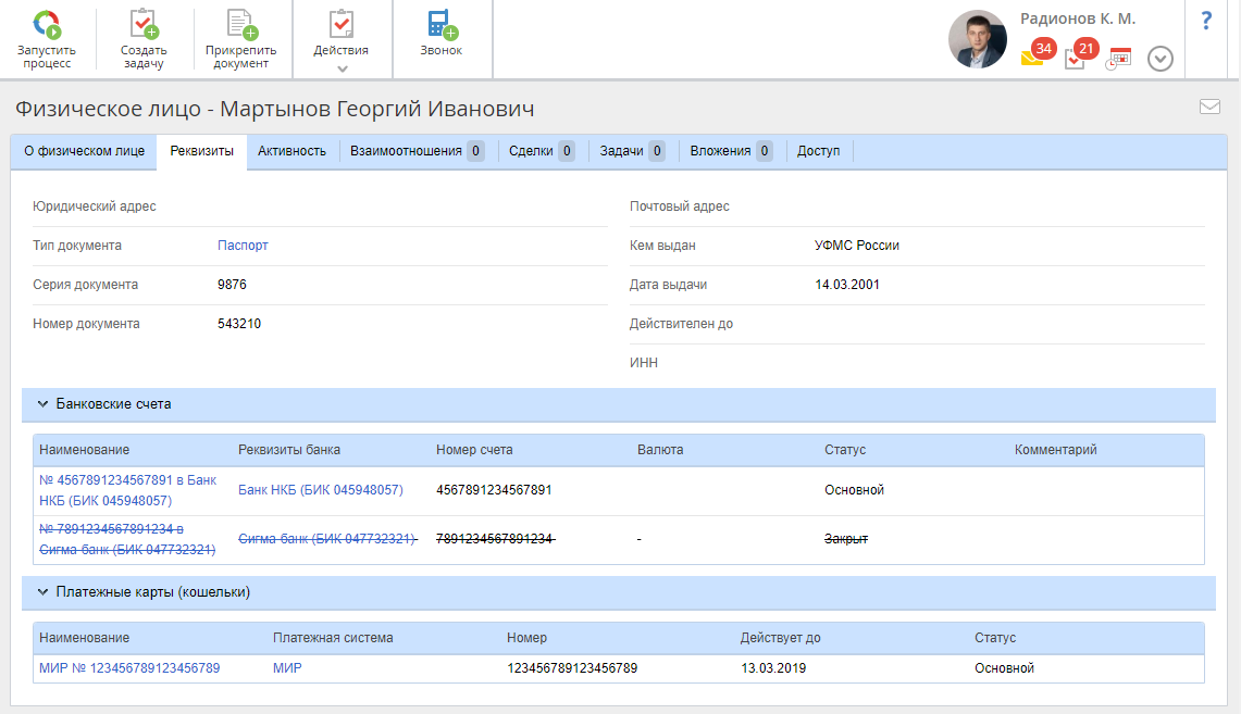 Рис. 4. Вкладка "Реквизиты" карточки физического лица