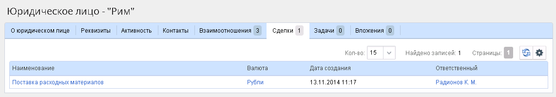 Пример вкладки Сделки карточки юридического лица представлен на рис. 9.