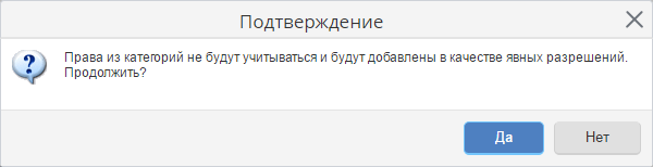 При снятии данного флажка будет открыто диалоговое окно (рис. 14), в котором необходимо подтвердить отключение наследования прав доступа, указанных в категории, нажав на кнопку Да.