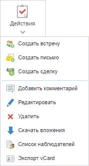 При нажатии на кнопку Действия или на пиктограмму появляется выпадающее меню, которое предлагает: