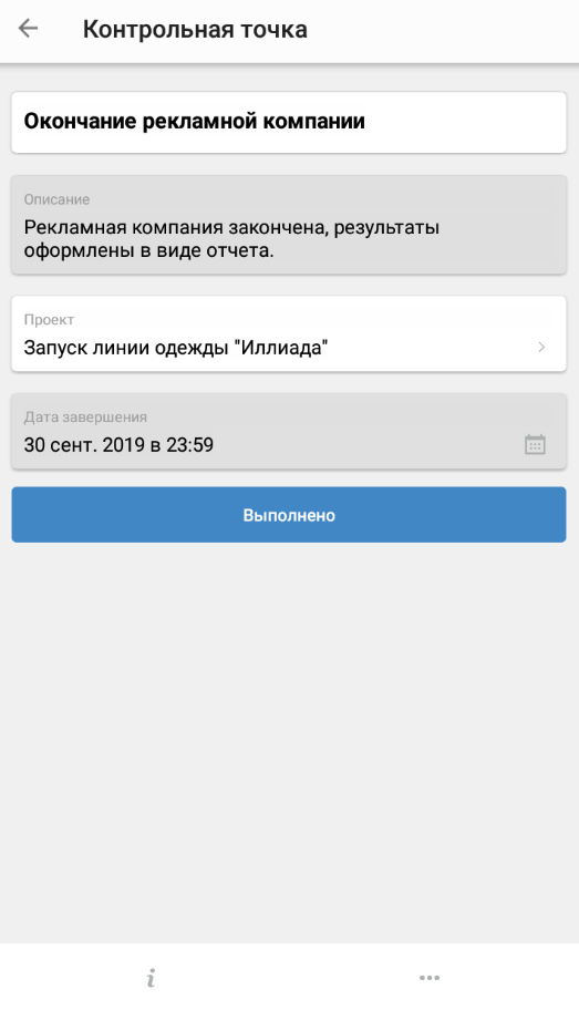 Рис. 5. Мобильное приложение "ELMA Mobile". Страница контрольной точки
