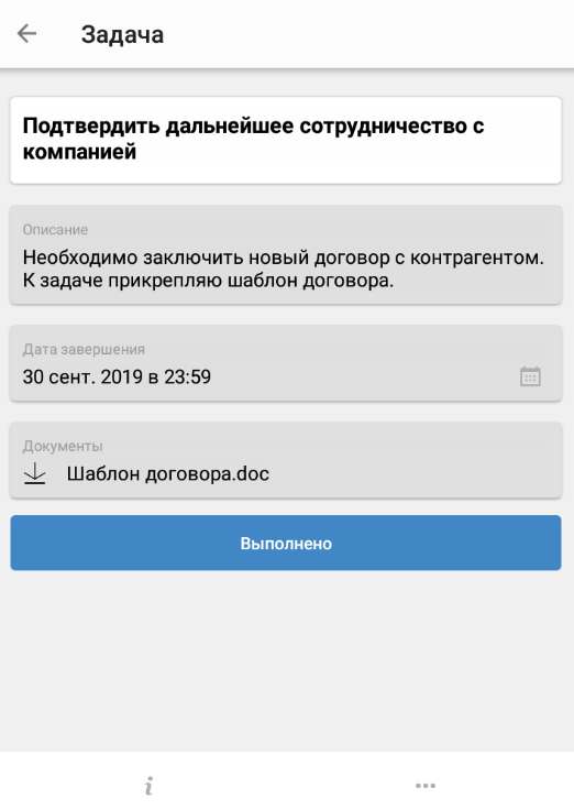 Рис. 1. Мобильное приложение "ELMA Mobile". Страница пользовательской задачи