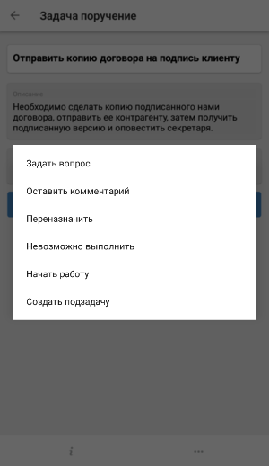 Рис. 7. Мобильное приложение "ELMA Mobile". Платформа Android. Действия с задачей