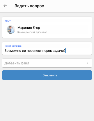 Рис. 9. Мобильное приложение "ELMA Mobile". Страница создания вопроса