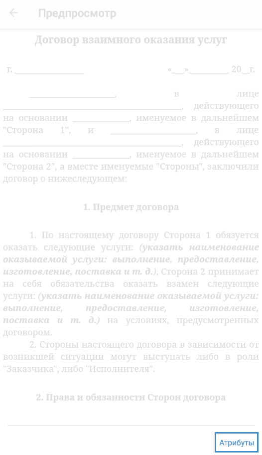 Рис. 3. Мобильное приложение "ELMA Mobile". Предпросмотр электронного документа. Кнопка "Атрибуты"