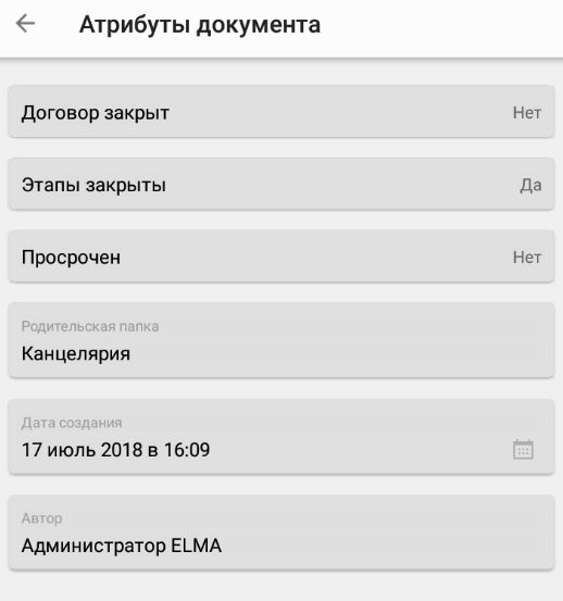 Рис. 4. Мобильное приложение "ELMA Mobile". Атрибуты документы