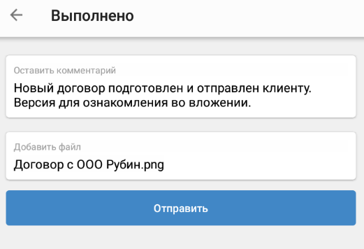 Выполнено. После этого откроется страница выполнения, на которой при необходимости можно оставить комментарий или добавить файл, а затем нажать на кнопку