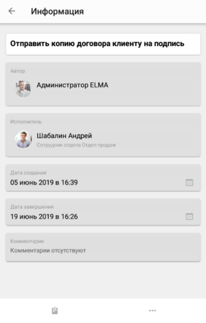 Рис. 6. Мобильное приложение "ELMA Mobile". Информация о задаче