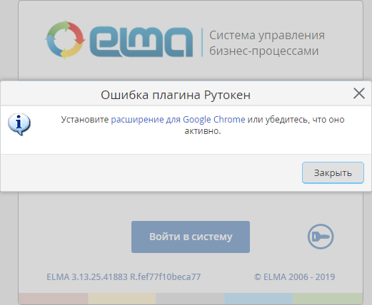 Например, при отсутствии установленного плагина Рутокен и/или активированного расширения "Адаптер Рутокен Плагин" отображается ошибка с указанием ссылки на установку данного расширения (рис. 14).