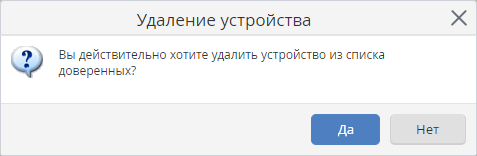Откроется окно подтверждения удаления устройства из списка доверенных (рис. 18). Далее следует нажать на кнопку Да.