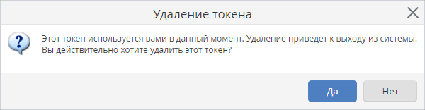 В том случае, если пользователем был выполнен вход в систему с помощью токена, при удалении токена появится следующее предупреждение (рис. 20).