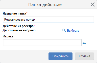 Название папки *– название создаваемой папки-действия. Поле является обязательным для заполнения.