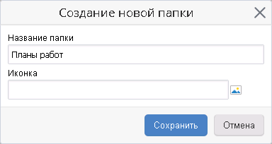 Открывшееся диалоговое окно аналогично окну при создании папки. В данном окне необходимо ввести новое название папки в поле Название папки и нажать на кнопку Сохранить для сохранения нового названия папки.