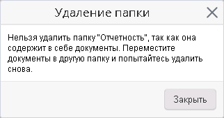 В системе ELMA удалению поддаются только пустые папки, не содержащие документы, другие папки или ссылки на документы.