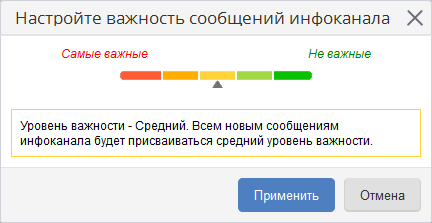 Для настройки важности сообщений определенного информационного канала установите ползунок на необходимый уровень, передвигая его кнопкой мыши, и нажмите на кнопку Применить.