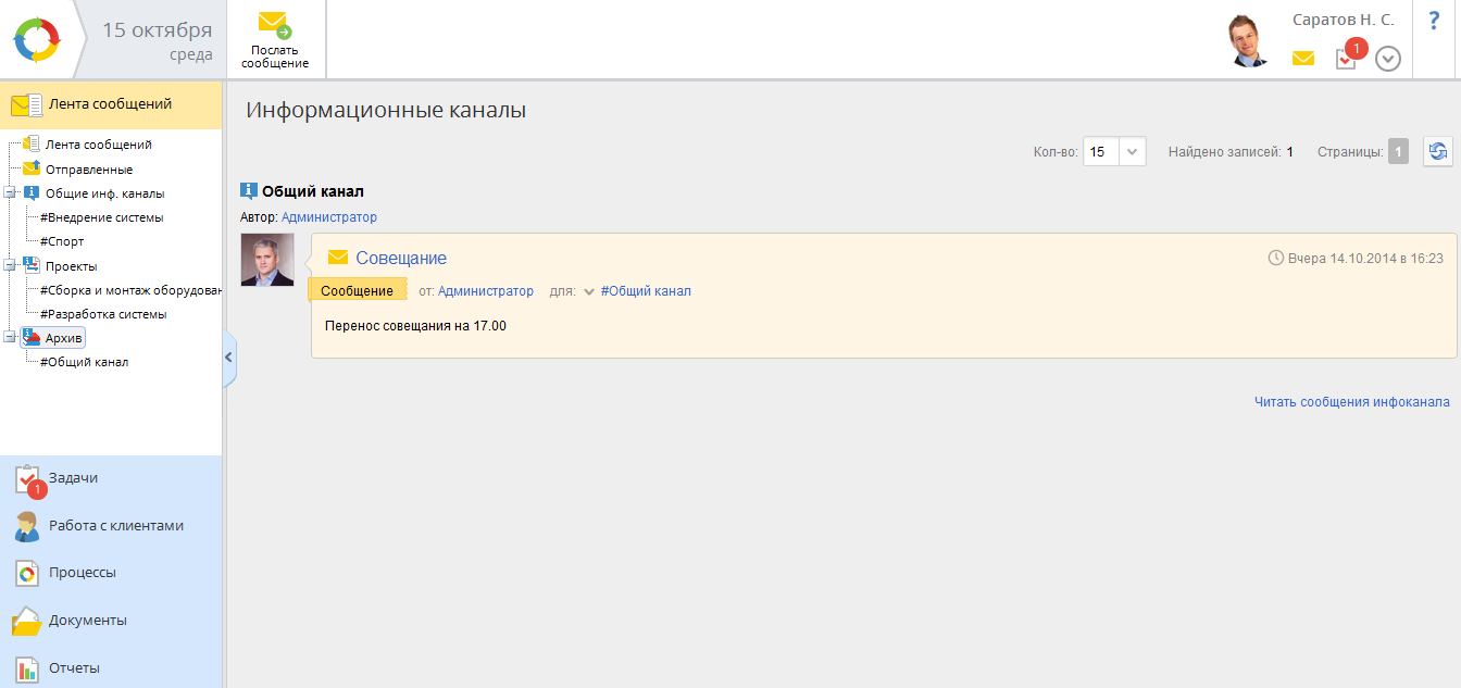 Архив информационных каналов – это группа информационных каналов в веб-приложении, в которой располагаются неактивные инф.каналы, обсуждения в которых было решено остановить (рис. 1).