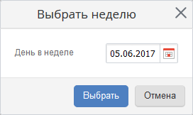 При необходимости подачи отчета не за текущую неделю необходимо нажать кнопкой мыши в верхнем меню на кнопку Выбрать неделю, в открывшемся окне (рис. 2) выбрать день требуемой недели и для перехода нажать кнопкой мыши на кнопку Выбрать.
