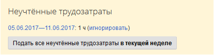 Неучтенные трудозатраты начинают отображаться в верхней части страницы формирования отчета по прошествии текущей рабочей недели.