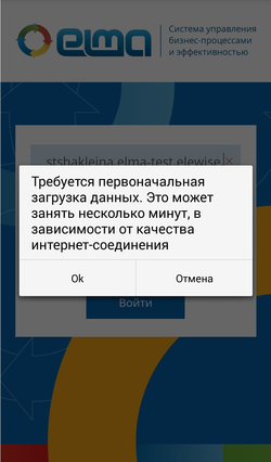 Рис. 12. Платформа Android. Уведомление о необходимости первоначальной загрузки данных