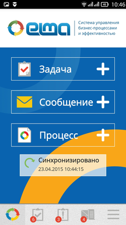 Рис. 16. Платформа Android. Мобильное приложение "ELMA BPM". Главная страница