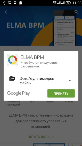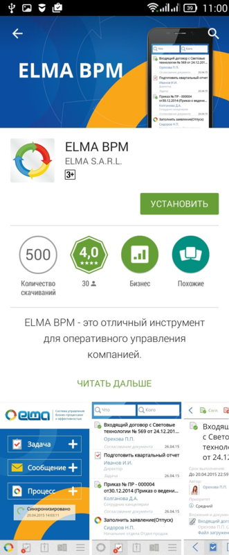 Рис. 3. Страница приложения "ELMA BPM" в Play маркете Google