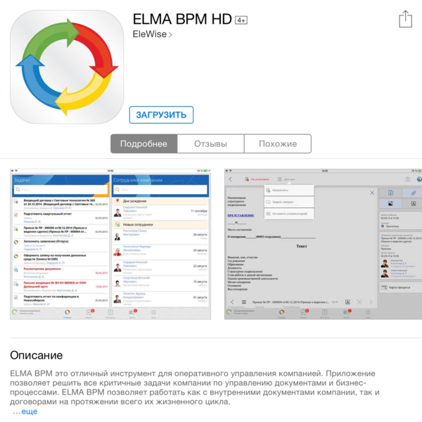 Рис. 4. Страница приложения "ELMA BPM HD" в AppStore