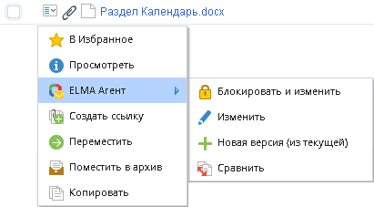 ELMA Агент – команды, доступные для работы с документом через ELMA Агент. Данная кнопка не отображается у веб-документов.