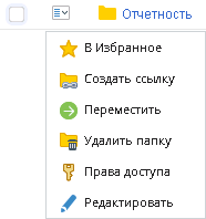Права доступа – назначение прав доступа к папке. Данный пункт меню отображается только у автора, администратора системы ELMA и других пользователей с уровнем прав "Редактирование" и выше.