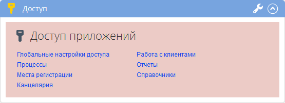Нажав кнопкой мыши на ссылку Доступ приложений, пользователь попадет в подраздел Настройки доступа раздела Администрирование – Пользователи.