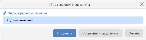 При необходимости установки дополнительных настроек нажмите кнопкой мыши на кнопку Дополнительно и заполните все необходимые поля. Подробнее см. в разделе Настройки портлетов.