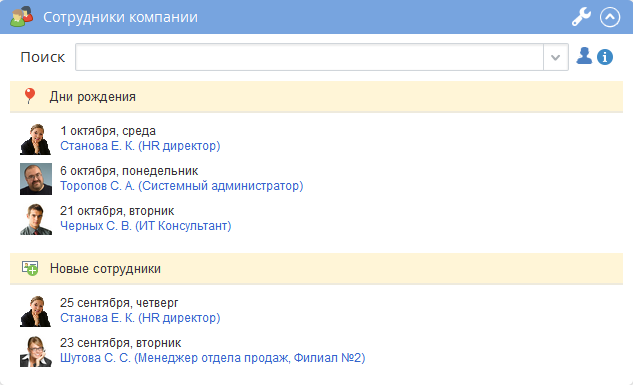 Пример портлета Сотрудники компании представлен на рис. 1.