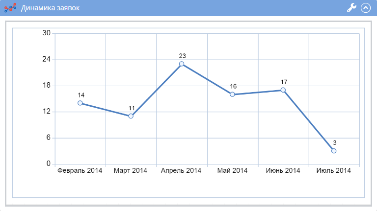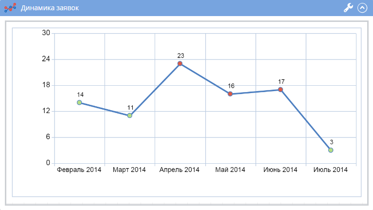 В рассматриваемом примере, на рис. 1, графически отображены значения метрики "Динамика заявок" за 6 последних месяцев.