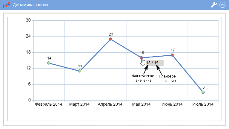 При настройке портлета на основе показателя, значения на графике отмечаются цветом, соответствующим статусу показателя в периоде (рис. 2).