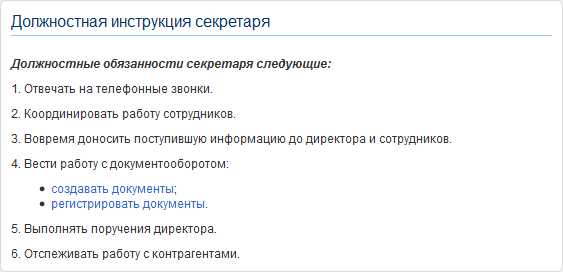 На рис. 2 приведен пример HTML-портлета с текстом (например, должностная инструкция секретаря).