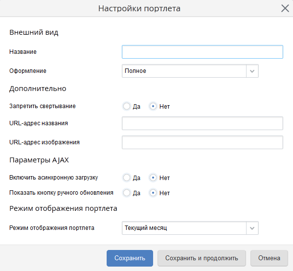 Выполнив все настройки портлета, нажмите на одну из кнопок: