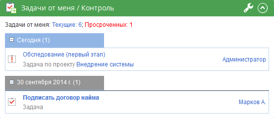 Рис. 1. Портлет "Задачи от меня / Контроль"