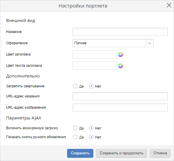 URL-адрес названия – в поле может быть вставлен URL-адрес страницы. В данном случае при нажатии кнопкой мыши по названию портлета будет осуществлен переход по указанному адресу.