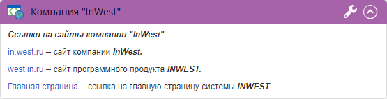 Например, если дать портлету название "Компания "InWest", он будет выглядеть следующим образом (рис. 2):