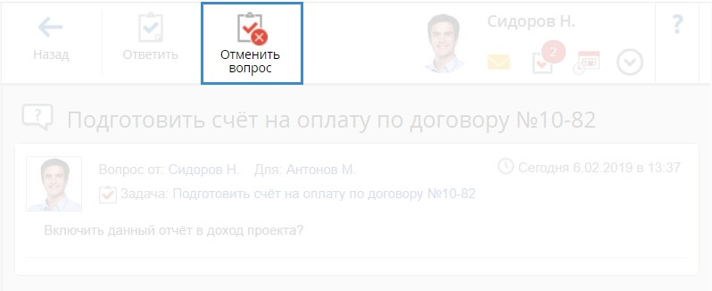 Рис. 8. Страница вопроса. Кнопка "Отменить вопрос"
