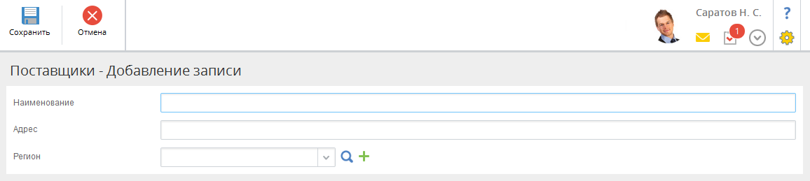 При нажатии на данную кнопку открывается страница создания записи справочника. На открывшейся странице (рис. 6) заполните все необходимые поля и нажмите на кнопку Сохранить.