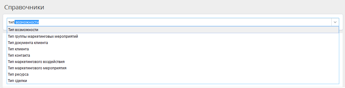 Для поиска справочника в разделе Справочники введите в строке быстрого поиска часть названия искомого справочника. В выпадающем списке отобразятся справочники, названия которых содержат введенную комбинацию символов (рис. 2). Для открытия страницы необходимого справочника нажмите на него кнопкой мыши в выпадающем списке.