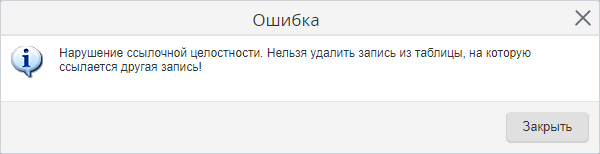 Город отобразится ошибка (рис. 5), запись будет недоступна для удаления.