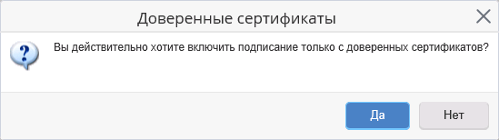на странице со списком доверенных сертификатов подписания (рис. 2) нажать на кнопку Включить подписание только с доверенных сертификатов подписания;