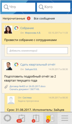 Мобильное приложение ELMA BPM позволяет получать, отправлять и комментировать сообщения.