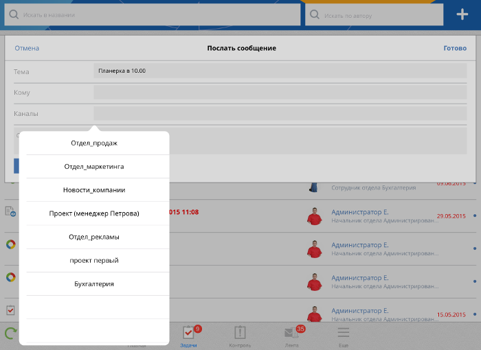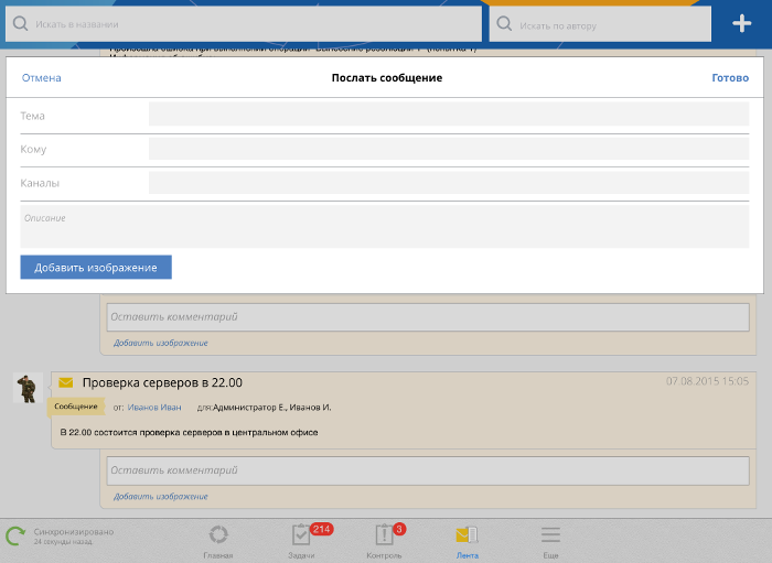 Мобильное приложение ELMA BPM позволяет получать, отправлять и комментировать сообщения.