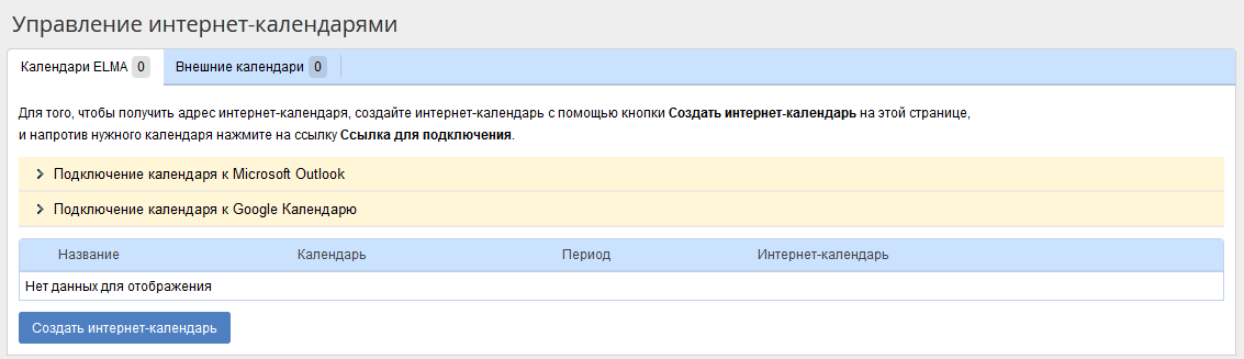 Для добавления интернет-календаря в систему ELMA необходимо выполнить следующие действия.