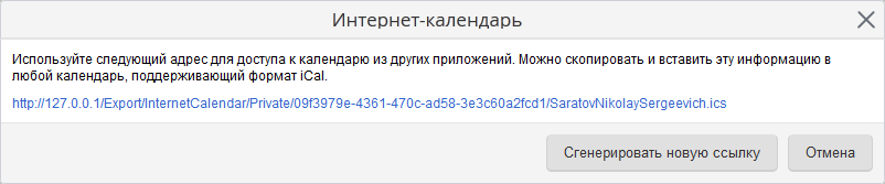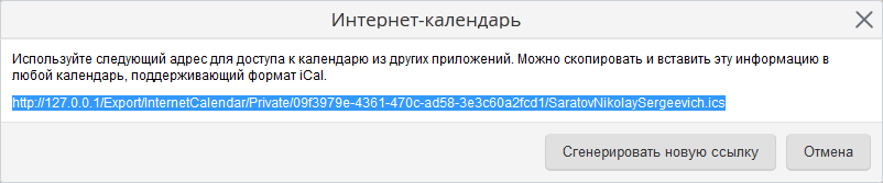 После генерации новой ссылки на интернет-календарь старая ссылка будет недействительна.