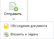 При нажатии на кнопку Отправить или на пиктограмму появляется выпадающее меню, которое предлагает выбрать следующие действия: