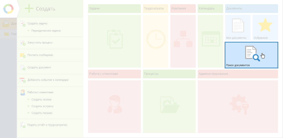 любой директории раздела Документы. В этом случае поиск документов будет осуществляться в пределах текущей папки, а не по всем документам системы ELMA.